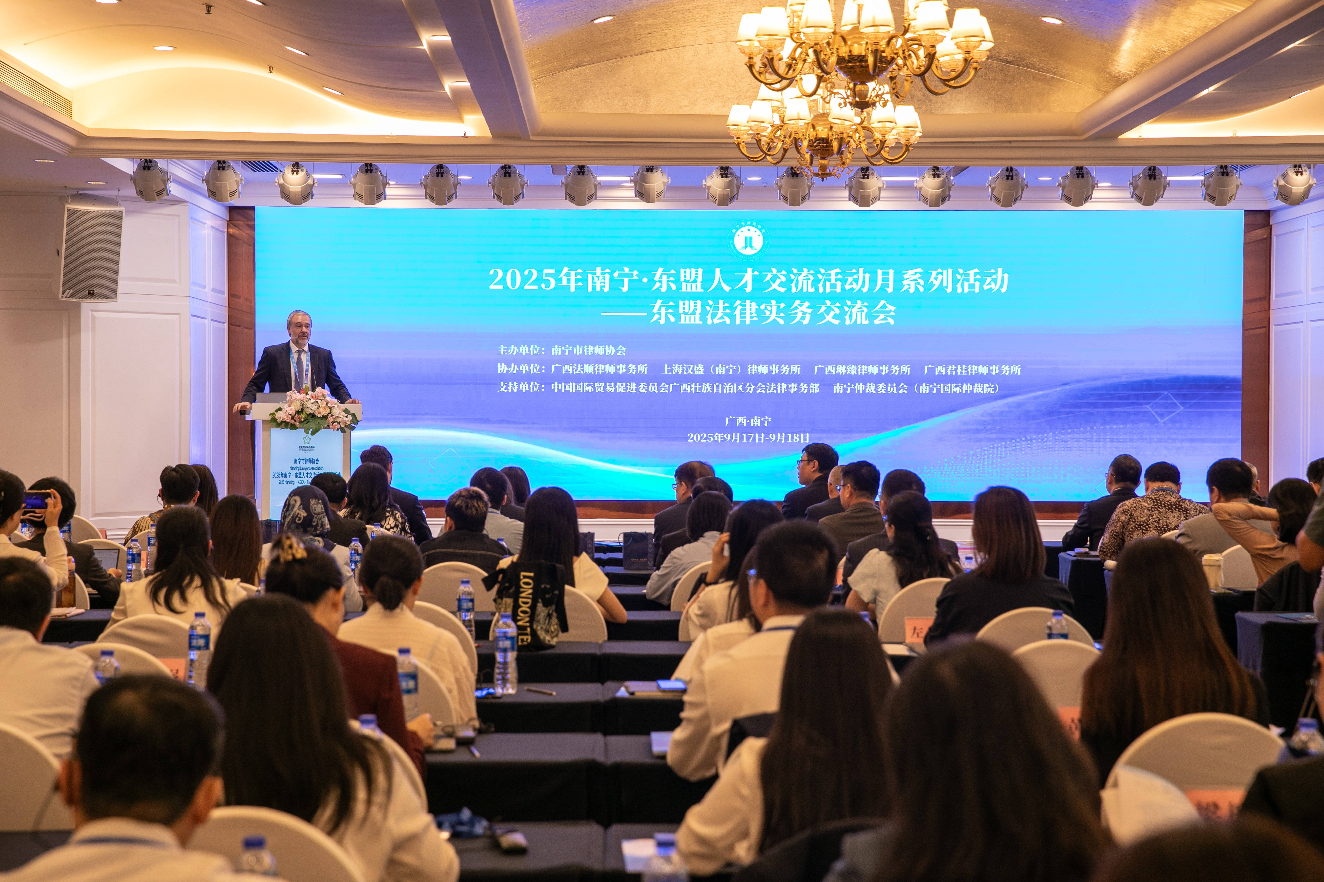 2025年9月17日,“2025年南宁·东盟人才交流活动月系列活动—东盟法律实务交流会”在南宁金紫荆国际大酒店盛大举行。本次大会由南宁市律师协会主办,广西法顺律师事务所、上海汉盛(南宁)律师事务所、广西琳臻律师事务所、广西君桂律师事务所协办,中国国际贸易促进委员会广西壮族自治区分会法律事务部、南宁仲裁委员会(南宁国际仲裁院)支持举办。