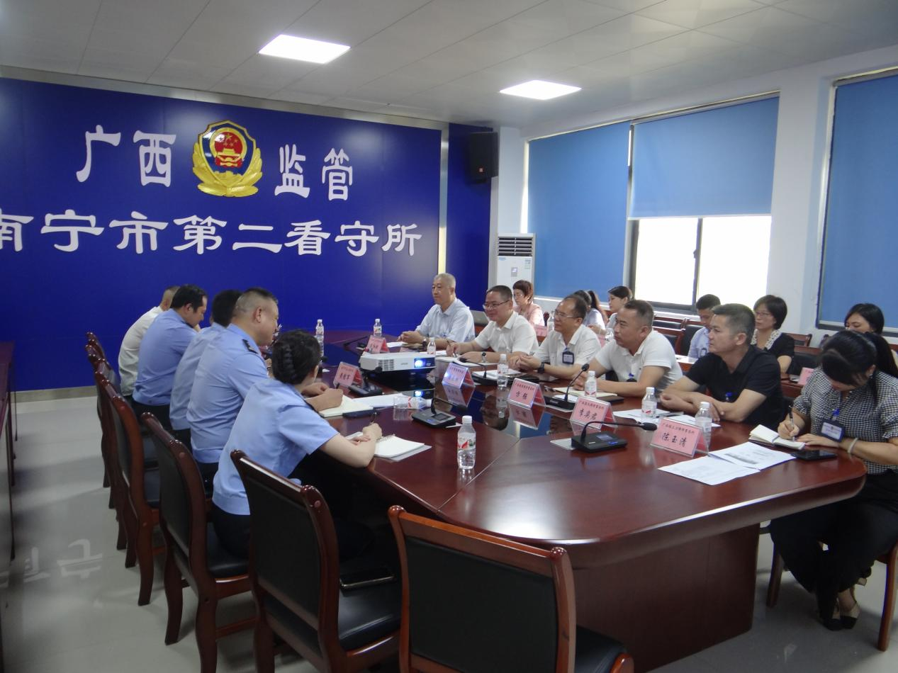 2023年7月26日上午,南宁市第二看守所与南宁市律师协会在南宁市第二看守所4楼会议室召开公安监管业务联席会议。南宁市第二看守所所长雷海兵、收押大队大队长蒙培镇,南宁市律师协会副会长陆庆标、蓝斌,维护律师执业合法权益委员会委员、刑事专业委员会委员及律师代表共16人参加会议。会议由南宁市第二看守所副所长黄慰军主持。