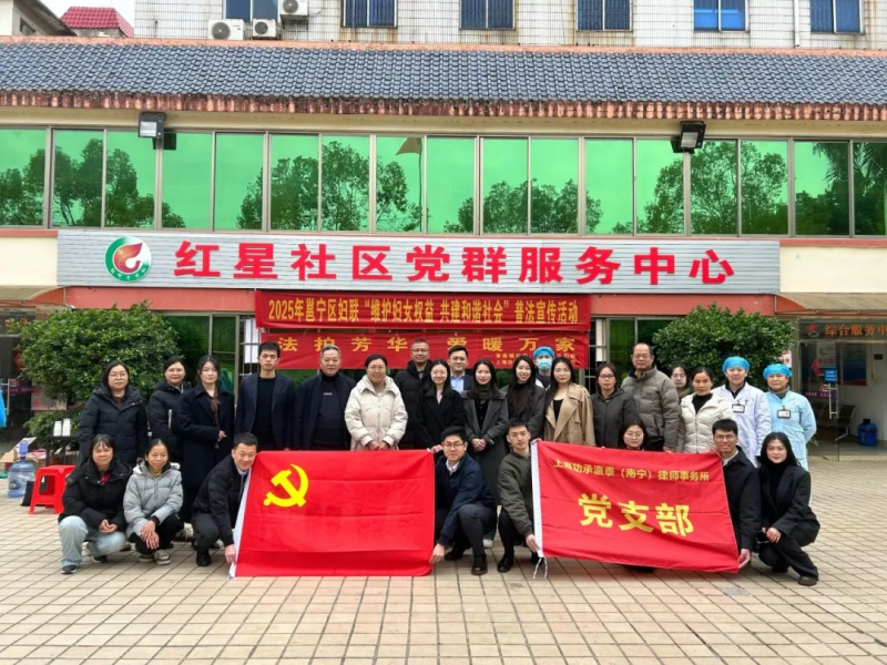 2025年3月7日,功承瀛泰(南宁)律师事务所党支部携手南宁市邕宁区司法局、邕宁区妇女联合会、红星社区居民委员会开展“法护芳华·爱暖万家”普法宣传活动。