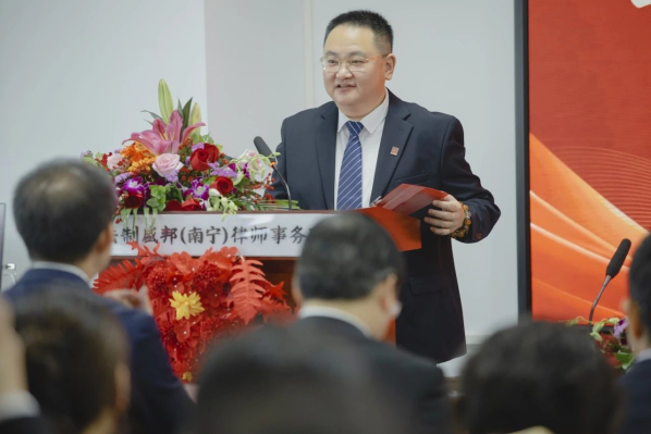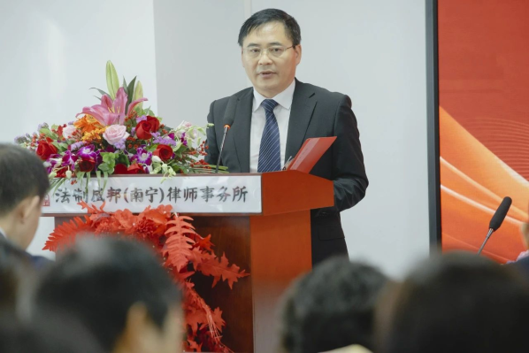 黄财基副会长高度肯定法制盛邦(南宁)分所成立对广西涉外法治服务的推动作用,强调其“立足湾区、辐射东盟”的定位将助力中国-东盟自贸区法治协同发展。
