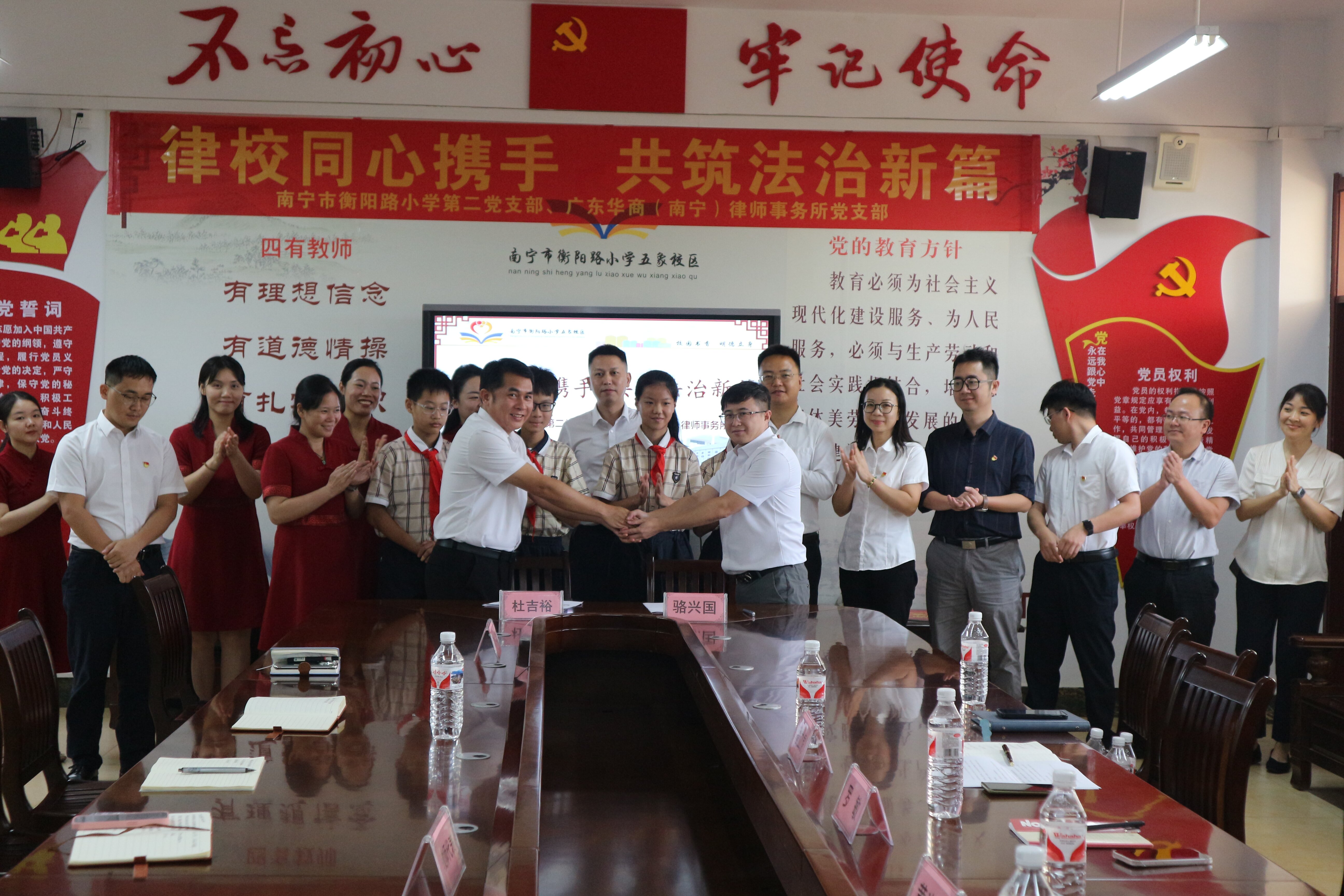 2025年9月12日全国人大常委会通过的《中华人民共和国法治宣传教育法》将于2025年11月1日起施行。为加强法治宣传教育,提升中小学生法律与规则意识,夯实全面依法治国社会基础,华商(南宁)律师事务所与南宁市衡阳路小学五象校区决定建立长期合作,联合开展公益法律服务活动。
