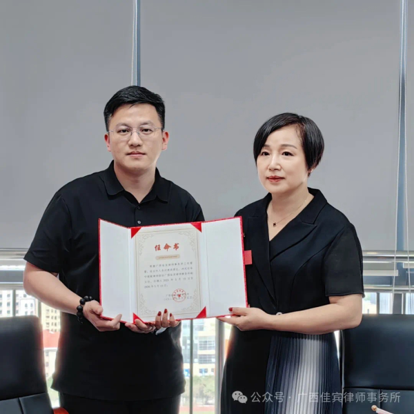 根据广西佳宾律师事务所工作需要,经合伙人会议表决通过,决定任命宁苑棋律师担任广西佳宾律师事务所副主任。