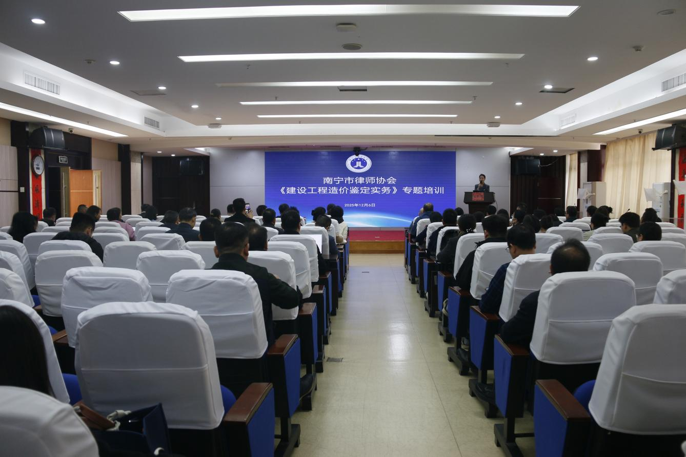 2025年12月6日,南宁市律师协会在南宁市司法局成功举办《建设工程造价鉴定实务》专题培训。南宁市律师协会副会长叶大禧、广西建设职业技术学院管理工程学院副院长杨书灵应邀出席,南宁市律师协会监事唐惠玲列席。此次培训以“专题主讲+专业与谈”的形式,为南宁市律师协会建设工程与房地产专业委员会委员、南宁市建设工程专业律师等100余名参会人员呈现了一场兼具理论深度与实践价值的精品课堂。