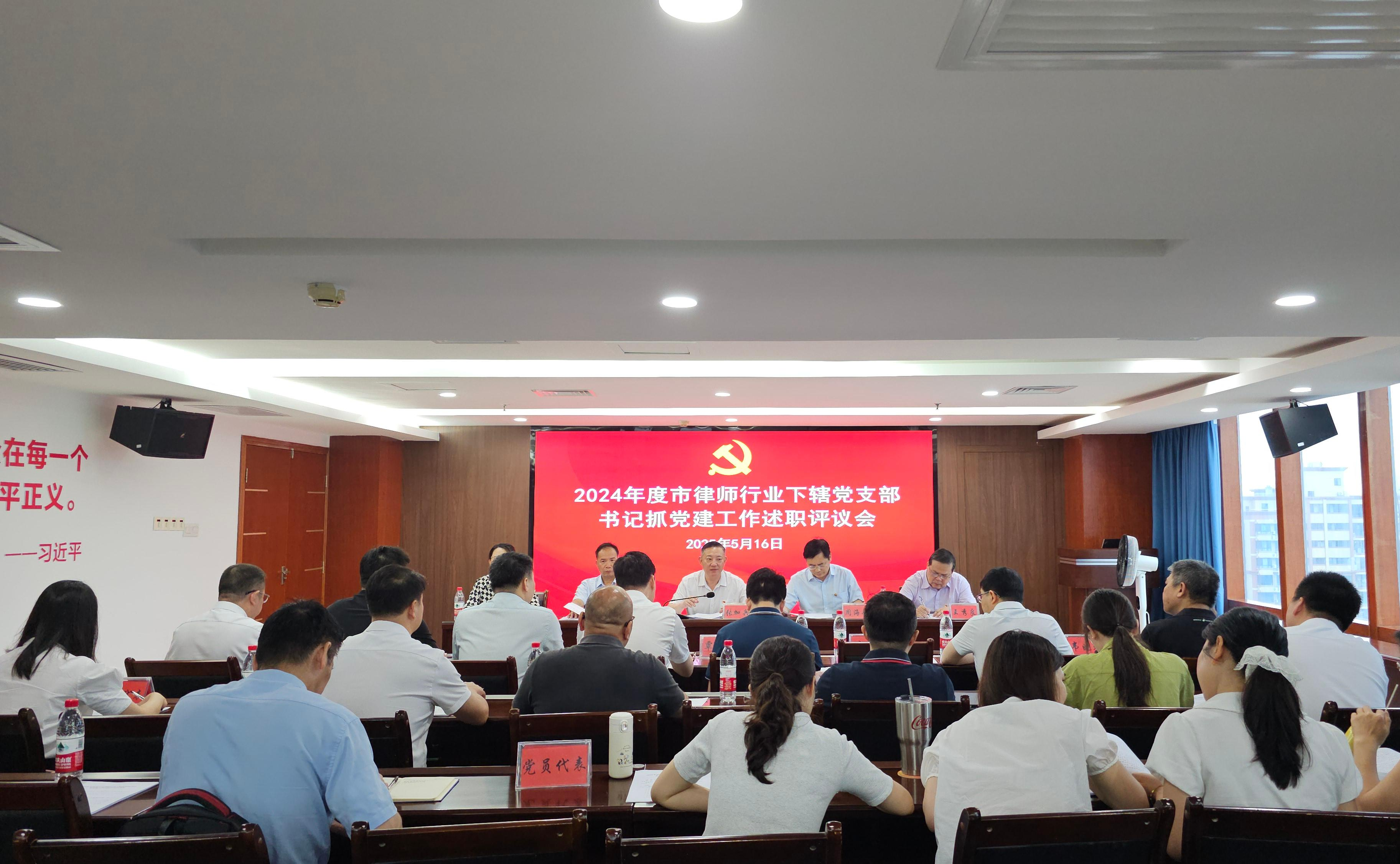 2025年5月16日上午,南宁市律师行业党委在新兴大厦A栋24楼会议室召开2024年度下辖党组织书记抓党建工作述职评议会。市司法局四级调研员、市律师行业党委书记张加兵主持会议,市律师行业党委委员、律所党支部书记代表及相关党员代表参会。