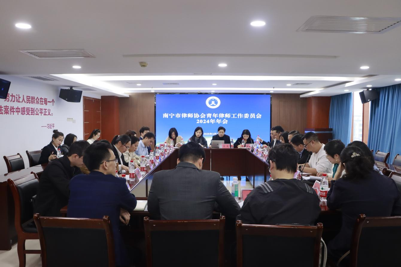 2025年3月12日,南宁市律师协会青年律师工作委员会召开2024年年会。南宁市司法局四级调研员、南宁市律师行业党委书记张加兵,南宁市律师协会会长周海船,南宁市司法局律师工作科科长、南宁市律师行业党委副书记王甜甜及南宁市律师协会相关领导、青年律师工作委员会委员参加此次会议。会议由南宁市律师协会副会长韦琳主持。