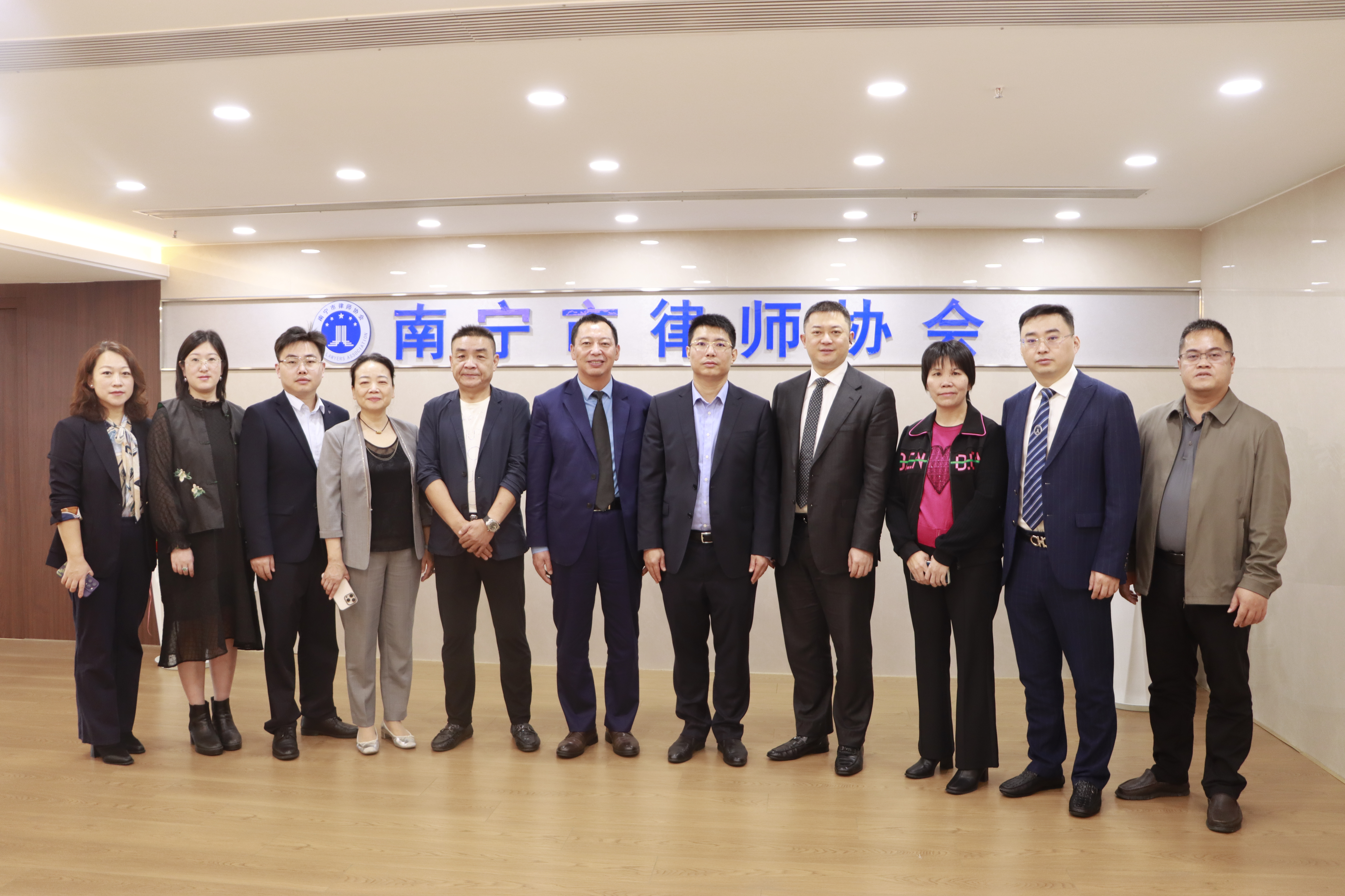 2025年10月24日,南京市律师协会监事长席超一行7人到我会交流座谈,南宁市律师协会监事长石登崇等人陪同座谈。