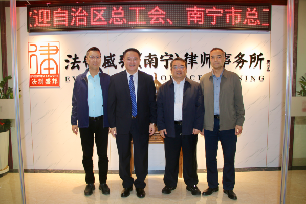 2025年12月23日上午,自治区总工会、南宁市总工会调研组一行莅临广东法制盛邦(南宁)律师事务所(以下简称“法制盛邦南宁分所”)调研基层工会工作。本次调研由自治区总工会基层工作部部长韦超新带队,南宁市总工会副主席、党组成员侯嘉康,南宁市总工会基层工作部部长李松林,自治区总工会基层工作部工作人员谢丽梅等调研组成员参加。良庆区人大常委会党组成员、副主任、城区总工会主席梁翠宣,良庆区总工会常务副主席闭耀新等陪同调研。