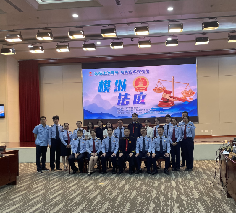 为了弘扬税收法治精神,进一步提升南宁税务系统领导干部的法治意识,5月31日下午,由国家税务总局南宁市税务局、良庆区税务局所主办的“弘扬法治精神 服务税收现代化”模拟法庭活动在南宁市市民讲堂举办,南宁市税务系统各单位及机关部门主要领导及青年干部100多人到现场参与本次活动。