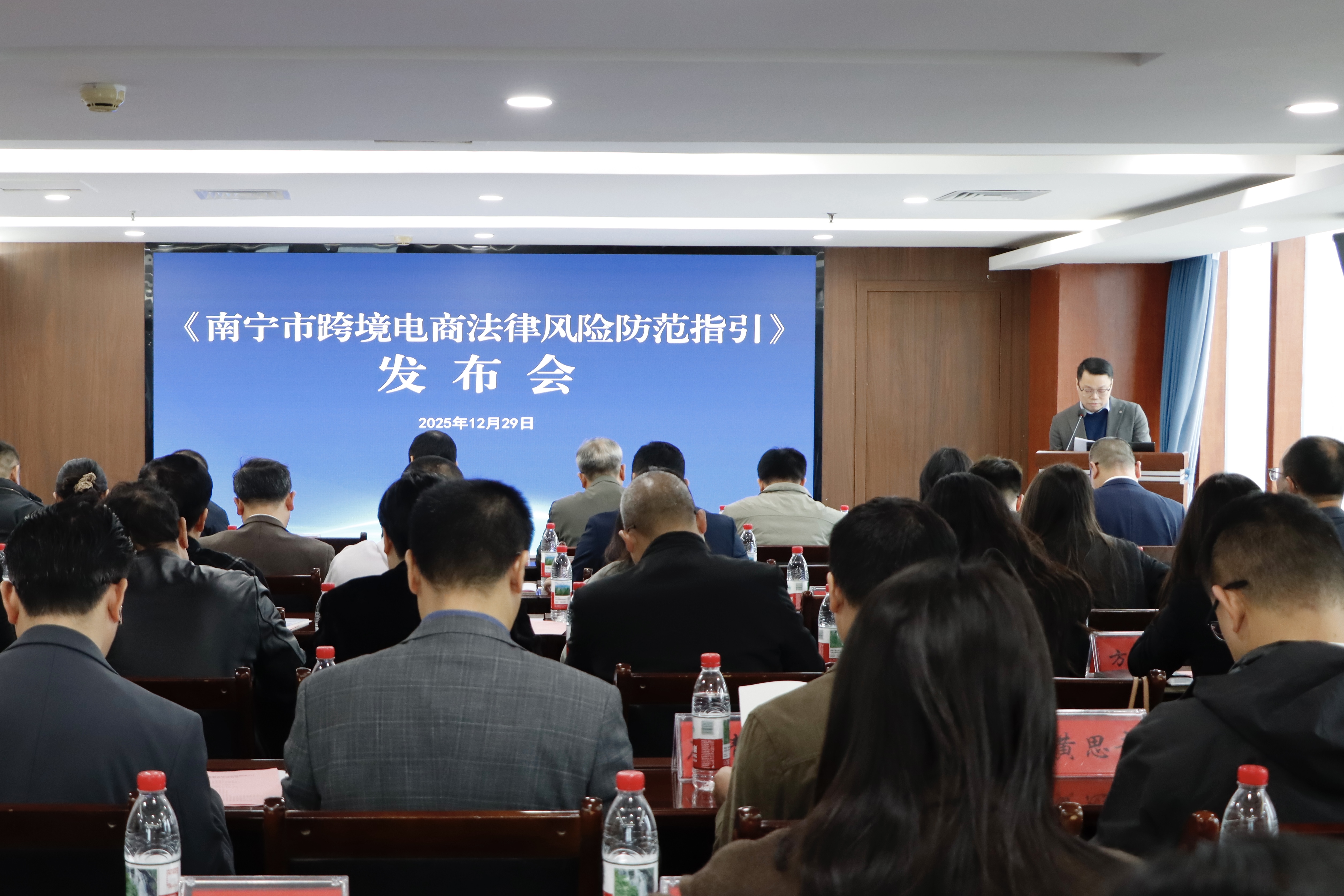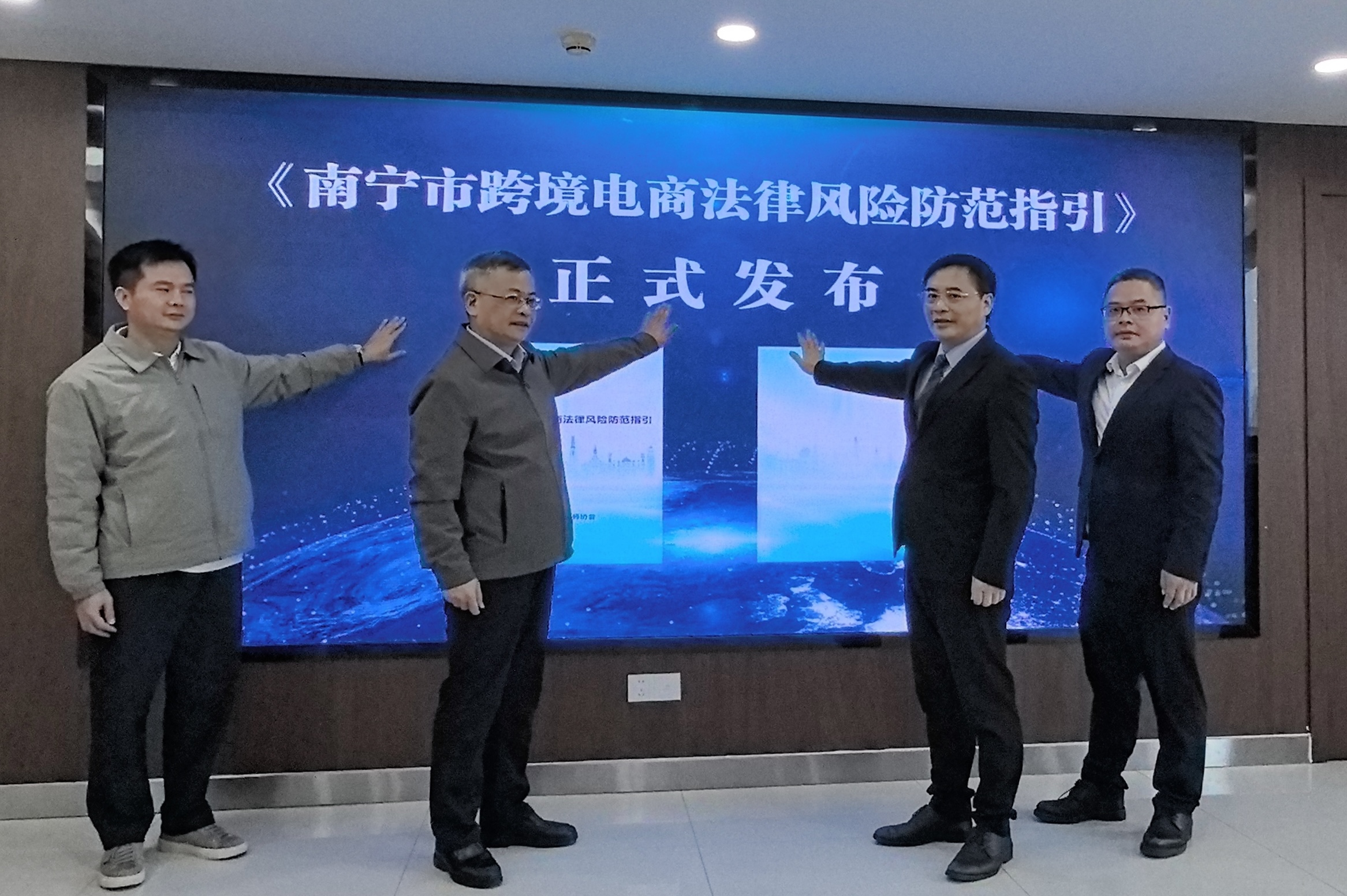 2025年12月29日,《南宁市跨境电商法律风险防范指引》(以下简称“《指引》”)发布会在南宁市律师协会会议室隆重举行。本次活动以“筑牢法治防线,助力稳健出海”为核心,跨境电商行业协会、企业、律师代表齐聚现场,共同见证这一重要成果的发布。发布会由南宁市律师协会涉外专业委员会主任梁恩主持。