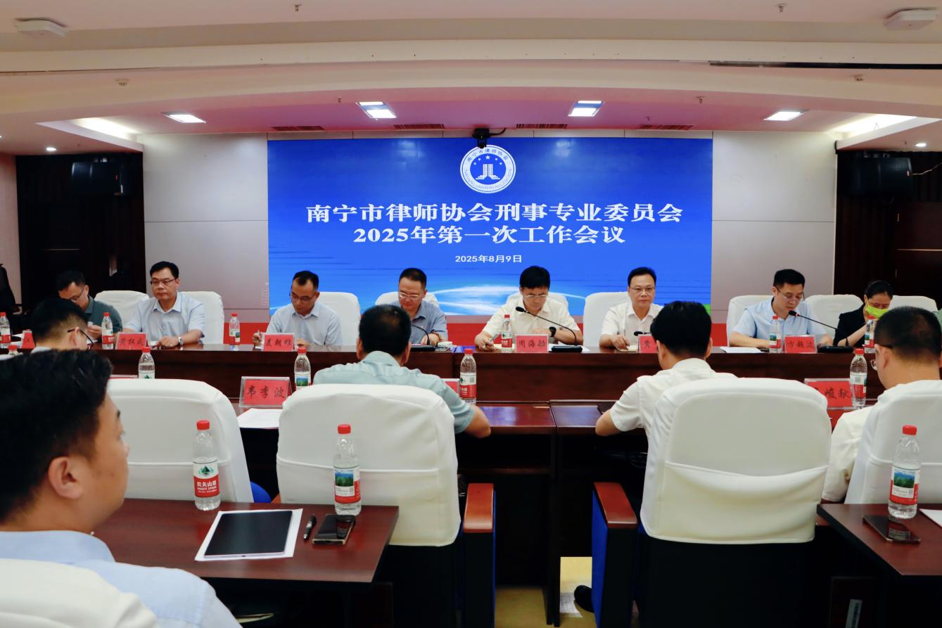 2025年8月9日下午,为推动第七届南宁市律师协会刑事专业委员会工作的顺利开展,明确2025年工作方向与重点,传承“传帮带”优良传统,第七届南宁市律师协会刑事专业委员会召开2025年第一次工作会议。南宁市律师协会会长周海船、副会长黄爱、副监事长王小兵出席会议,第六届刑事专业委员会优秀委员代表方强、张培、邓宁应邀出席,第七届刑事专业委员会全体委员参加会议。会议由第七届刑事专业委员会主任方超波主持。