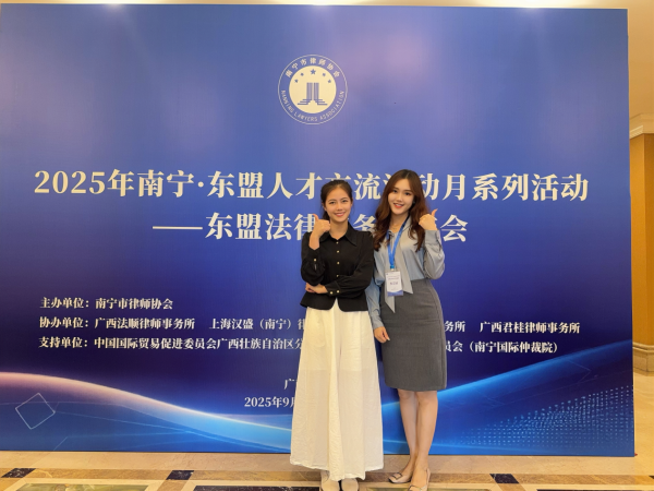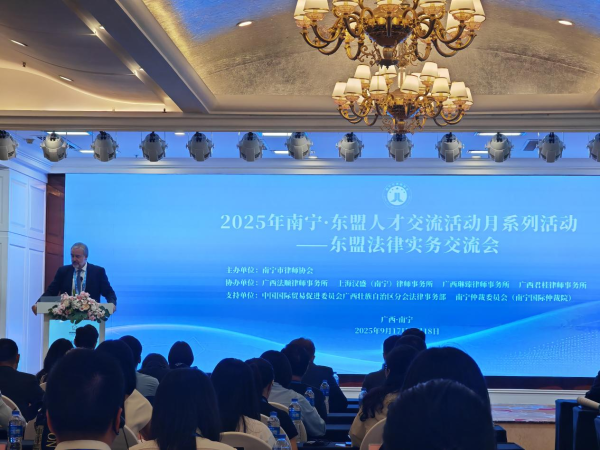 2025年9月17日,法制盛邦南宁分所副主任王心卓律师、杨晓梅律师应邀参加了2025年南宁・东盟人才交流月系列活动 —— 东盟法律实务交流会。此次活动由南宁市律师协会主办,南宁多家律所协办,并得到了中国国际贸易促进委员会广西壮族自治区分会法律事务部和南宁国际仲裁院的大力支持。