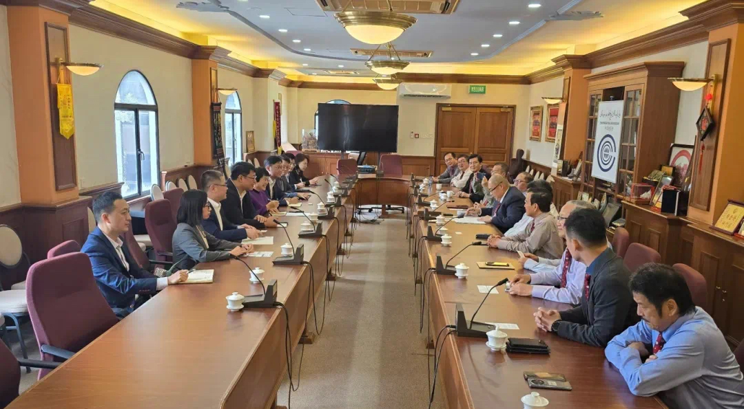 (代表团拜会中国贸促会驻新加坡代表处总代表、中资企业(新加坡)协会秘书长付晓辉)