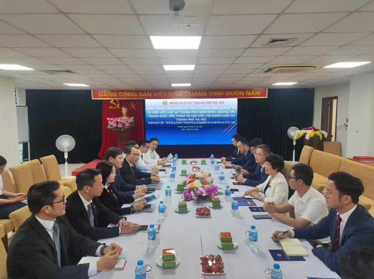 3月26—27日,代表团拜访了越南工商会、越南河内律师协会、越南防伪科技中心(ACT)等机构,在广西维冠律师事务所越南河内分所负责人苏日好主任引荐下,代表团与越南SB LAW律师事务所在数字经济、人工智能、国际仲裁、国际调解等多个领域展开广泛深入的交流,期间,广西法顺律师事务所、上海汉盛(南宁)律师事务所、广西君桂律师事务所与越南SB LAW律师事务所签署合作备忘录。