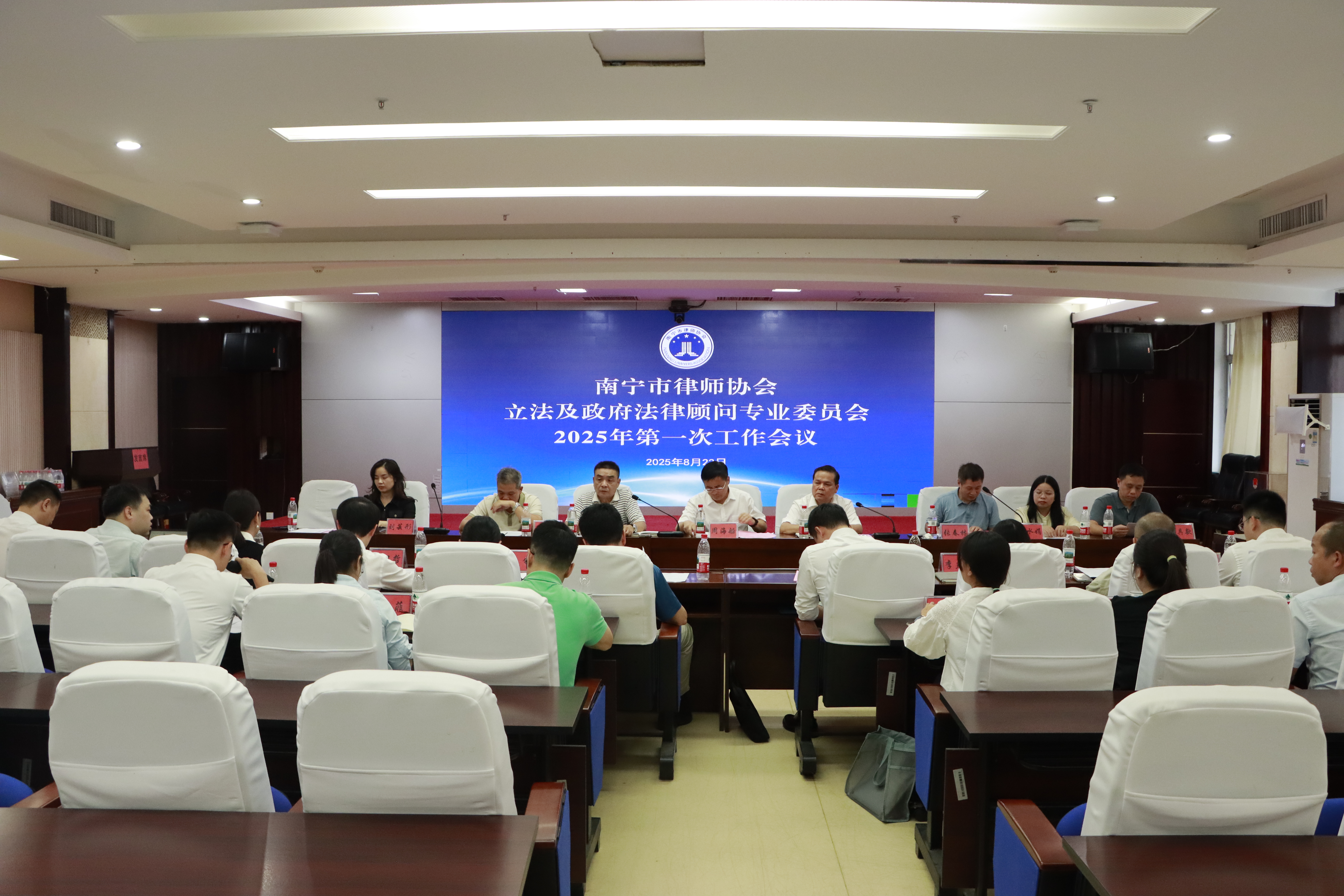 2025年8月23日下午,第七届南宁市律师协会立法及政府法律顾问专业委员会在南宁市司法局召开2025年第一次工作会议。南宁市律师协会会长周海船、副会长王秀良、监事会副监事长周鑫出席会议,立法及政府法律顾问专业委员会全体委员参加会议。会议由委员会主任张春林主持。