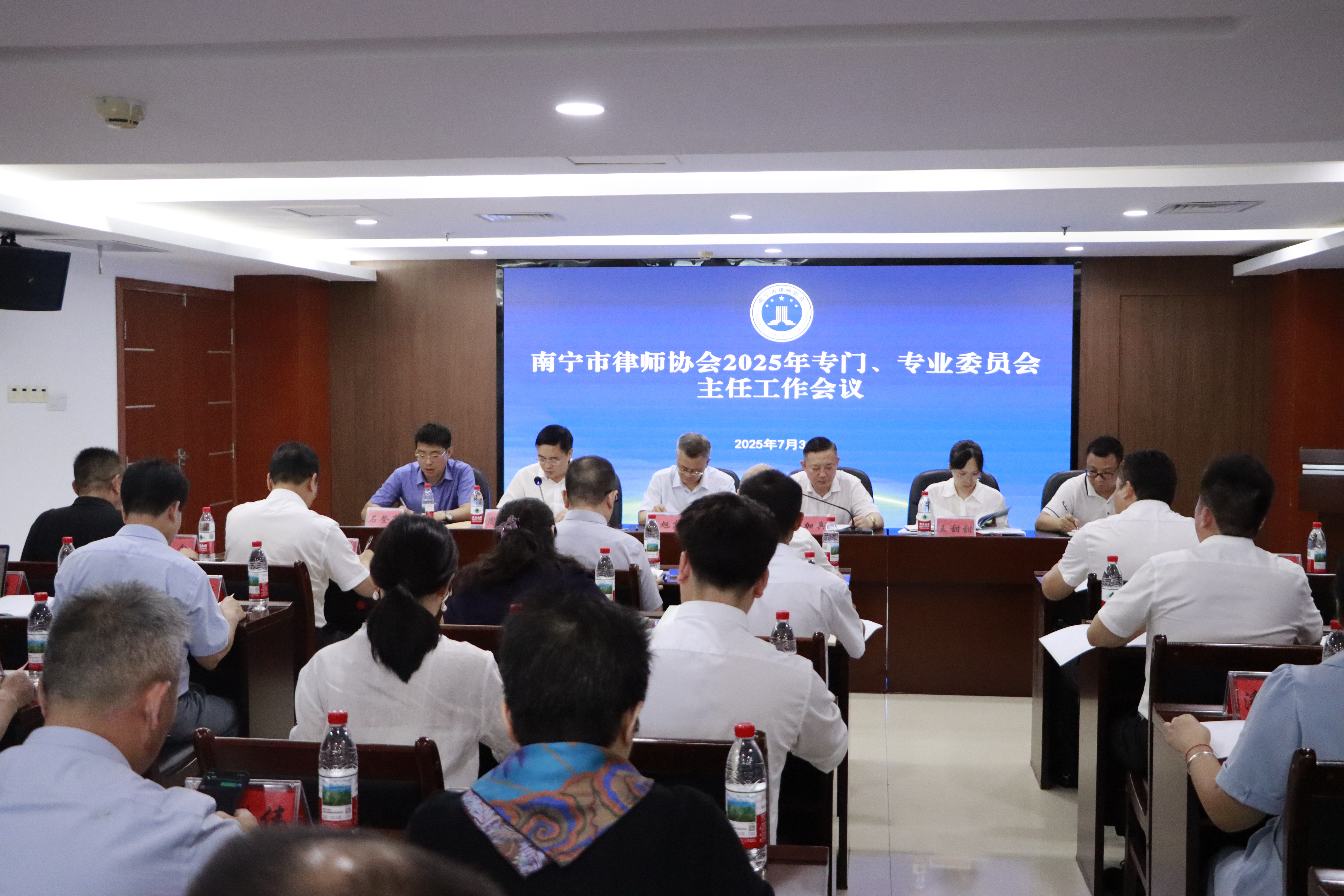 2025年7月31日下午,南宁市律师协会召开2025年专门、专业委员会主任工作会议,南宁市司法局副局长蓝旭高,南宁市司法局四级调研员、南宁市律师行业党委书记张加兵,南宁市司法局律师工作科科长、南宁市律师行业党委副书记王甜甜出席会议。南宁市律师协会会长办公会成员、监事会班子成员、各专门专业委员会主任共30余人参加会议。会议由南宁市律师协会会长周海船主持。